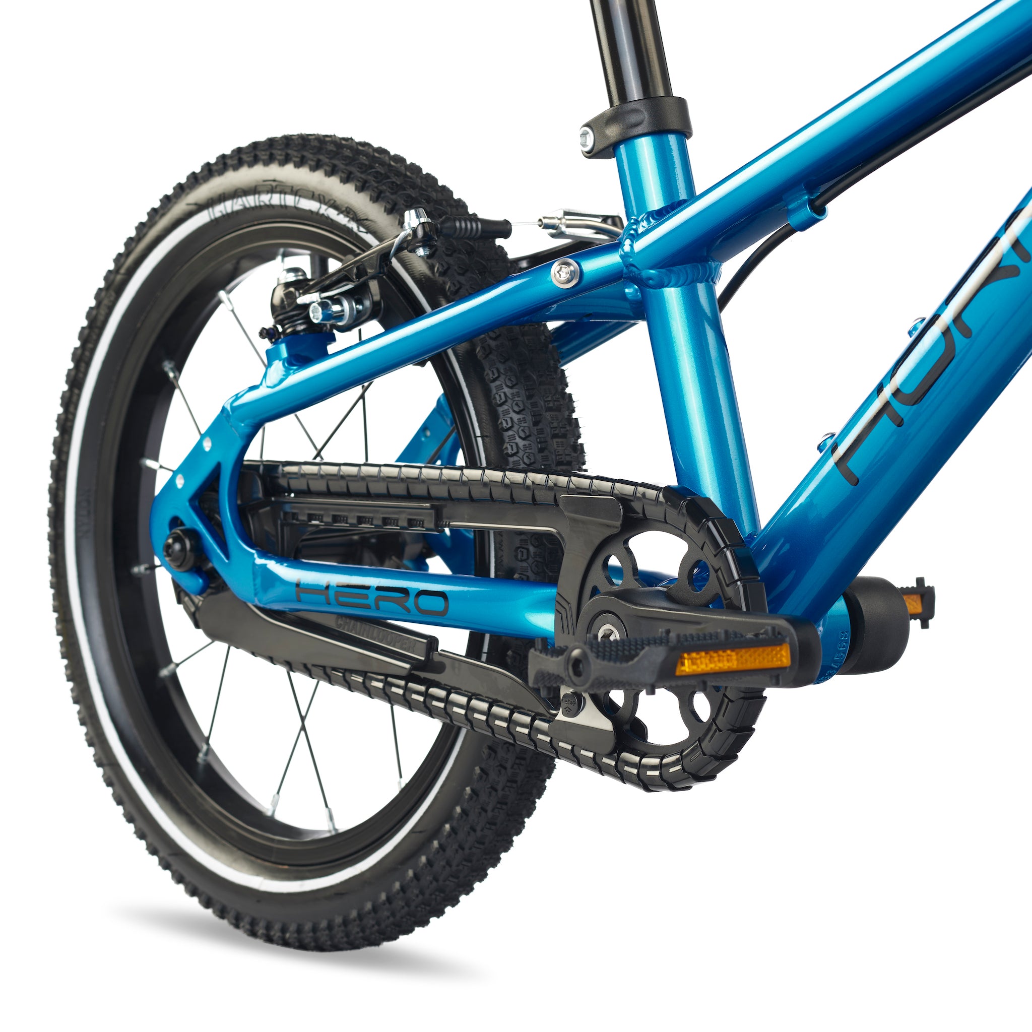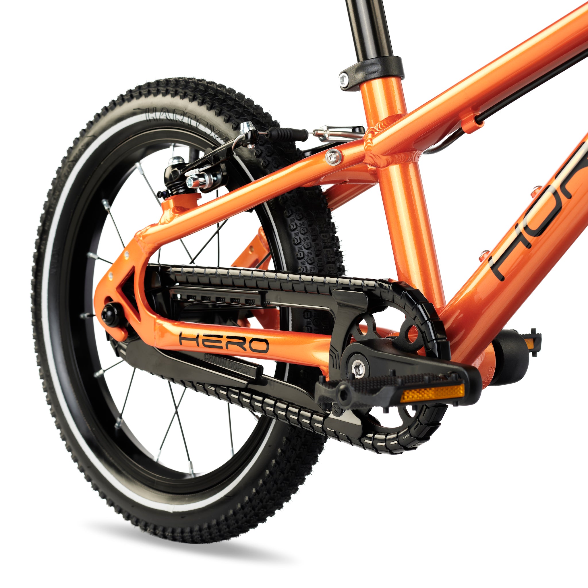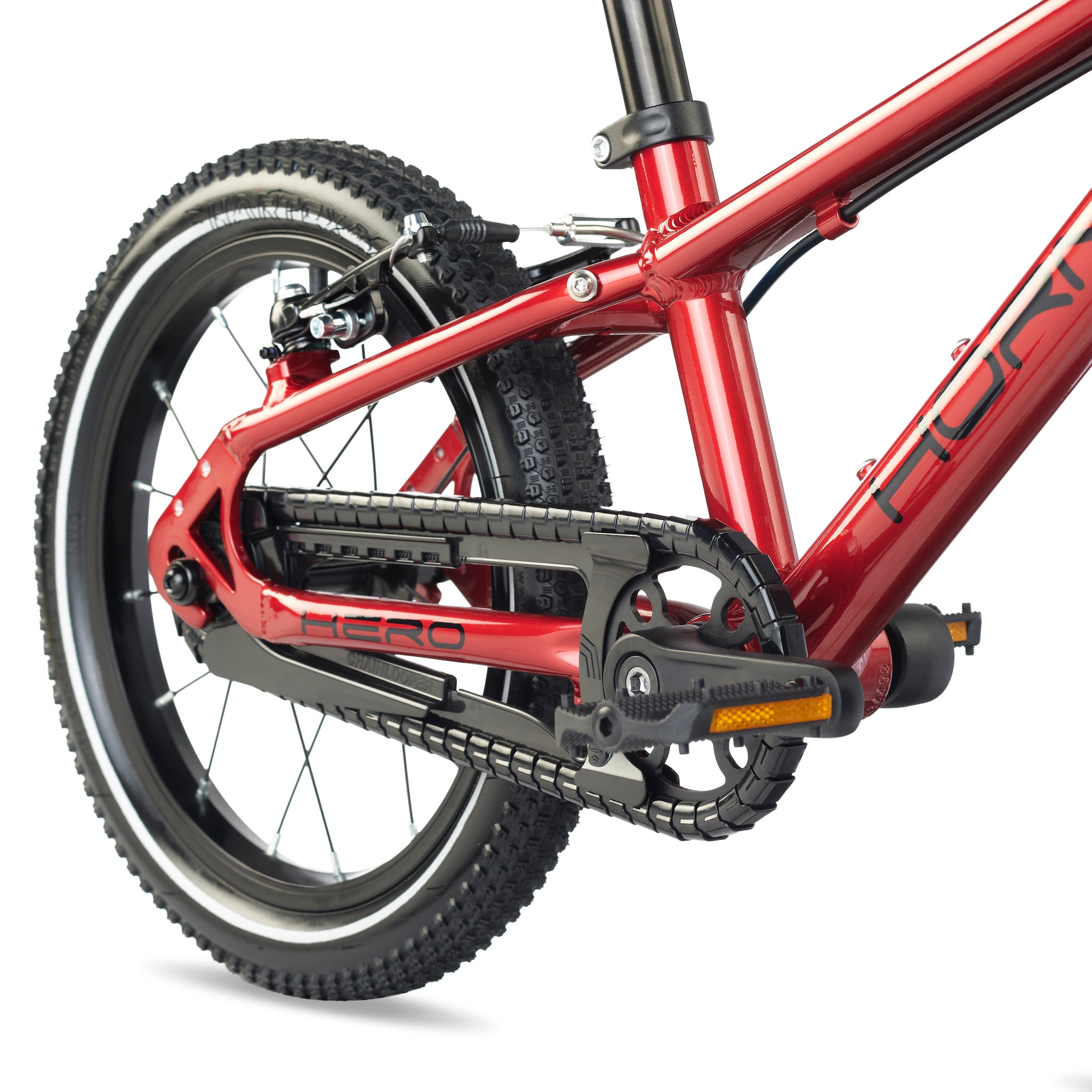 A comfortable riding position is key both on the flats and the uphills. This translates into a geometry that is optimised to allow a leaned-in position and a narrow Q-factor to cater to children’s narrower hips. HERO's lower handlebar position offers more stability, balance and control making it quicker and easier to learn.