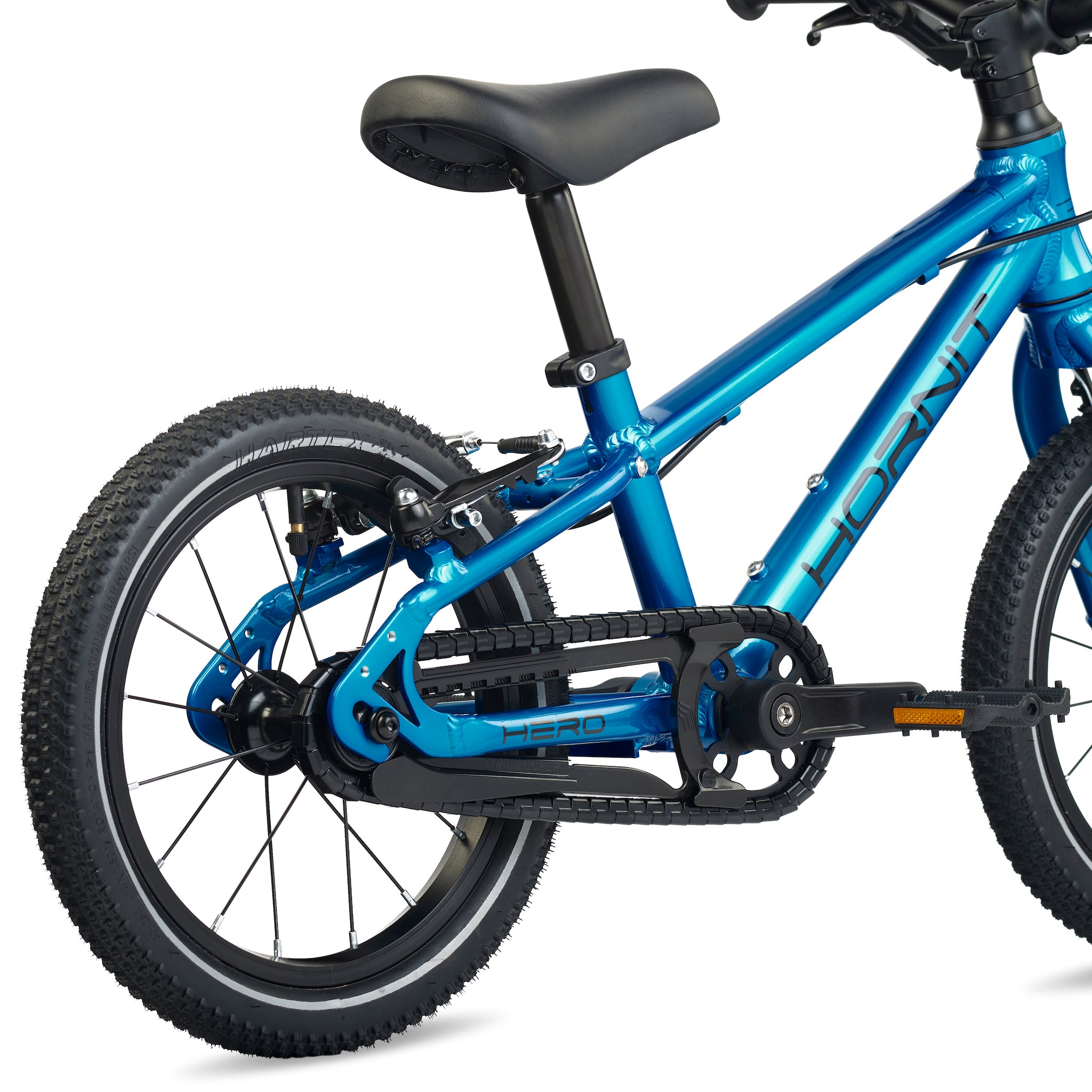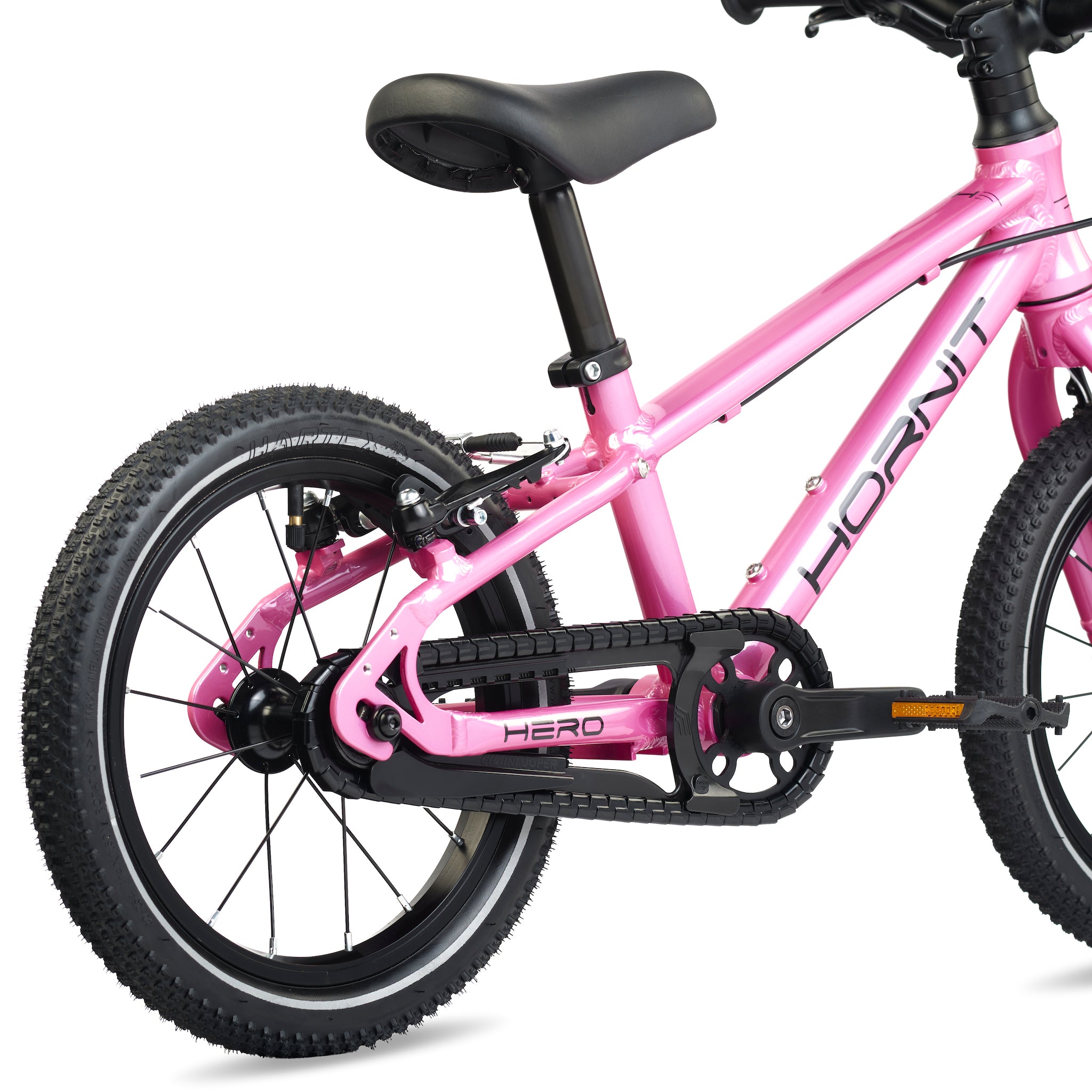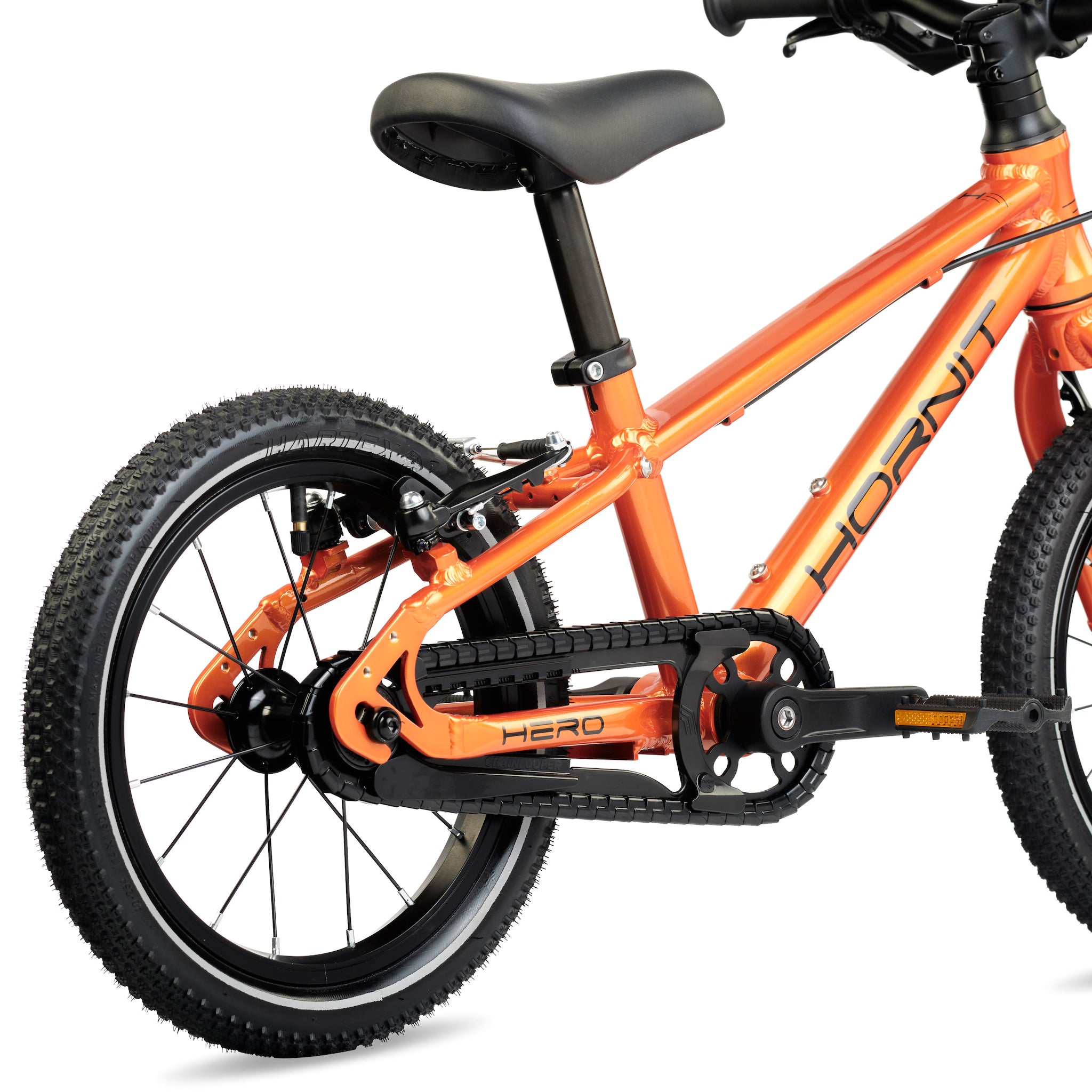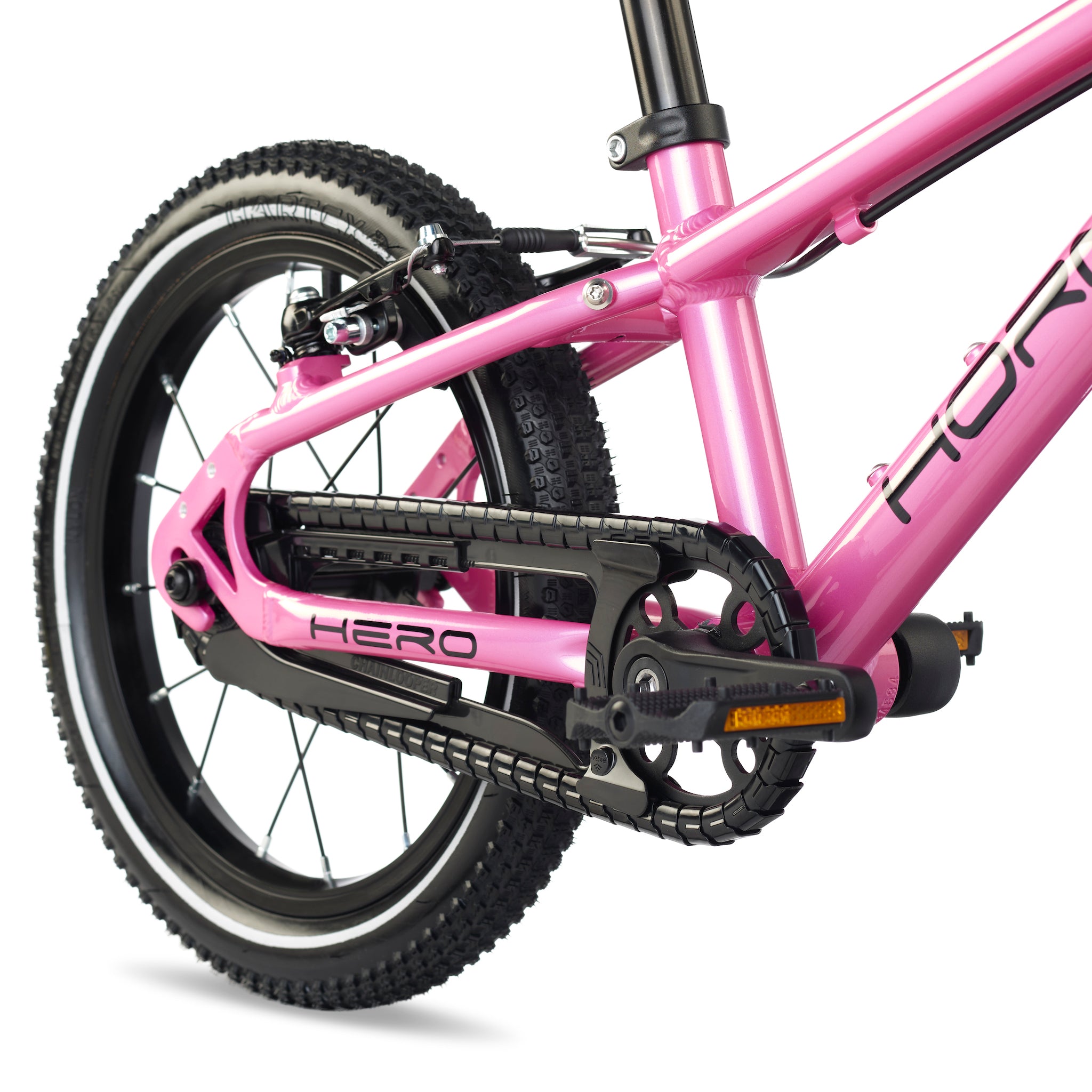 A comfortable riding position is key both on the flats and the uphills. This translates into a geometry that is optimised to allow a leaned-in position and a narrow Q-factor to cater to children’s narrower hips. HERO's lower handlebar position offers more stability, balance and control making it quicker and easier to learn.