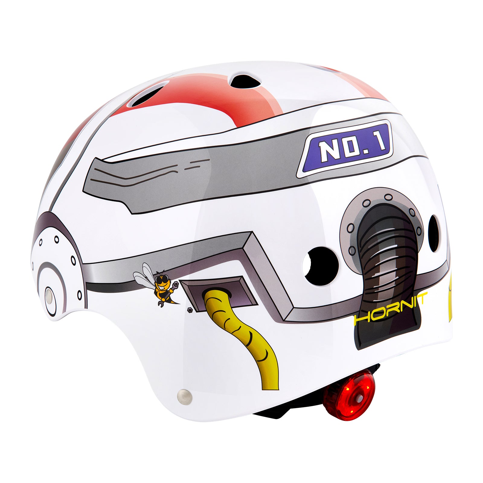 Made from durable, weather-proof plastic, our children's helmets protect your kids as they brave the rain, snow, and wind. Eleven air vents on each helmet ensure even air flow to keep them cool and comfortable. The rear safety light alerts distracted drivers or pedestrians to your child's presence. Combining style and safety, Hornit helmets come in a range of fun designs.