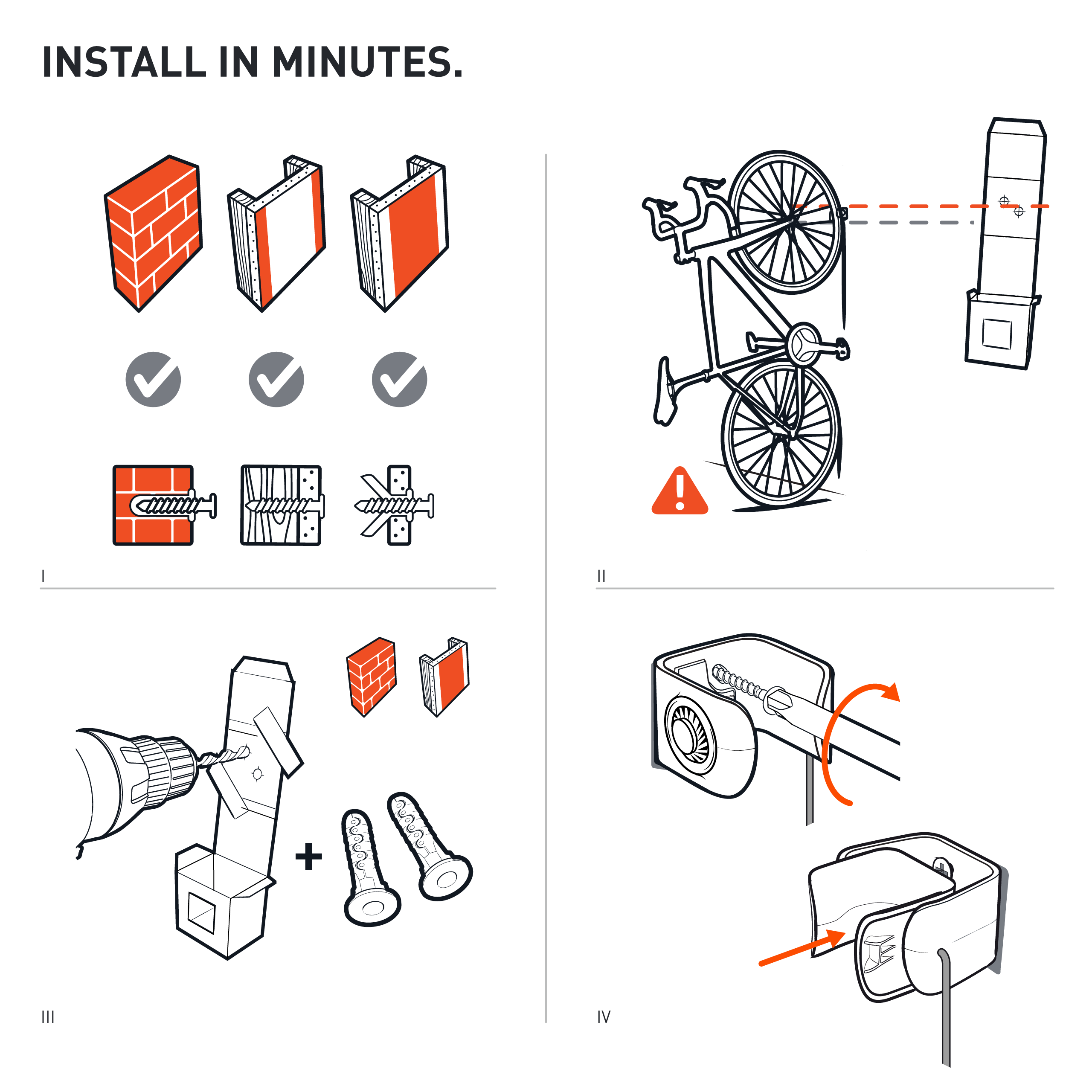 Designed in collaboration with FIDLOCK, the CLUG PRO utilises an innovative magnetic winch handle and ratchet system to ensure your bike always stays secure. Working with your floor to store your bike either vertically or horizontally, the CLUG roadie is suitable for road and touring bikes with tyres between 23-32mm. Mounting in minutes using the screws and wall plugs provided, the roadie can be fixed on brick wall, drywall or stud.