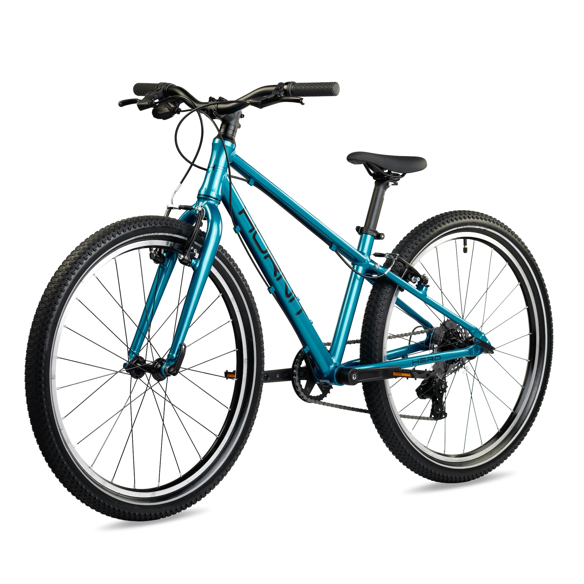 A lighter bike is easier to learn on and means your child will be happy to ride further than on a heavier bike. At 8.82kg the HERO is among the lightest 24” bikes in the market. The ‘leaned-in’ geometry makes it easier to pedal uphill than bikes with a more upright geometry, making for a more enjoyable riding experience.
