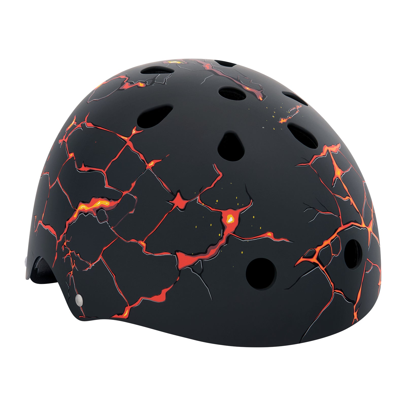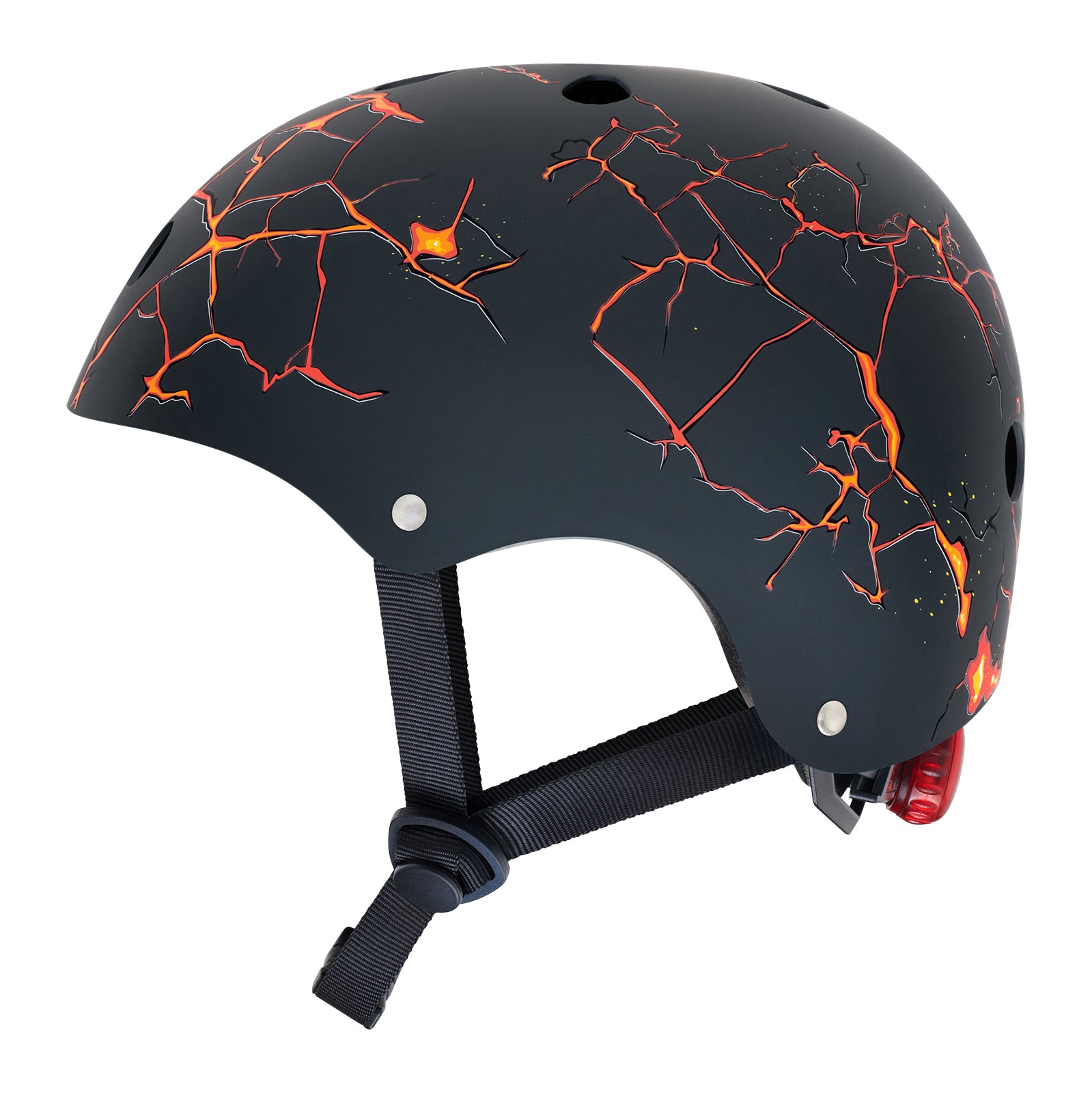 Brave the fiery Lava helmet with its fissured tectonic black surface. The cracks in the basalt simmer as the red and white hot magma oozes from the depths. This brand new design is understated, yet brimming with energy. Get ready to ride!