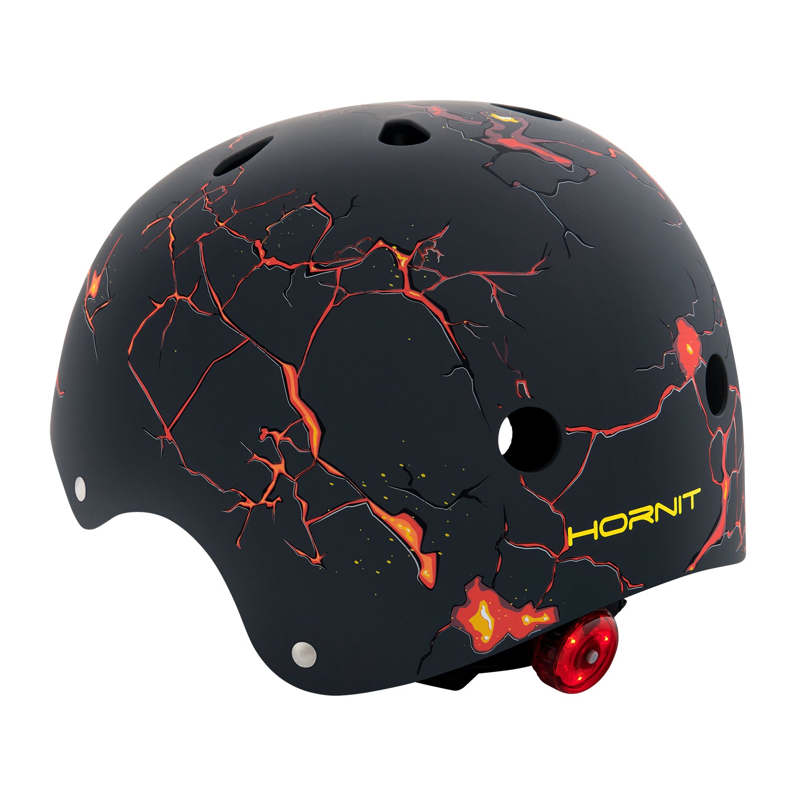Made from durable, weather-proof plastic, our children's helmets protect your kids as they brave the rain, snow, and wind. Eleven air vents on each helmet ensure even air flow to keep them cool and comfortable. The rear safety light alerts distracted drivers or pedestrians to your child's presence. Combining style and safety, Hornit helmets come in a range of fun designs.
