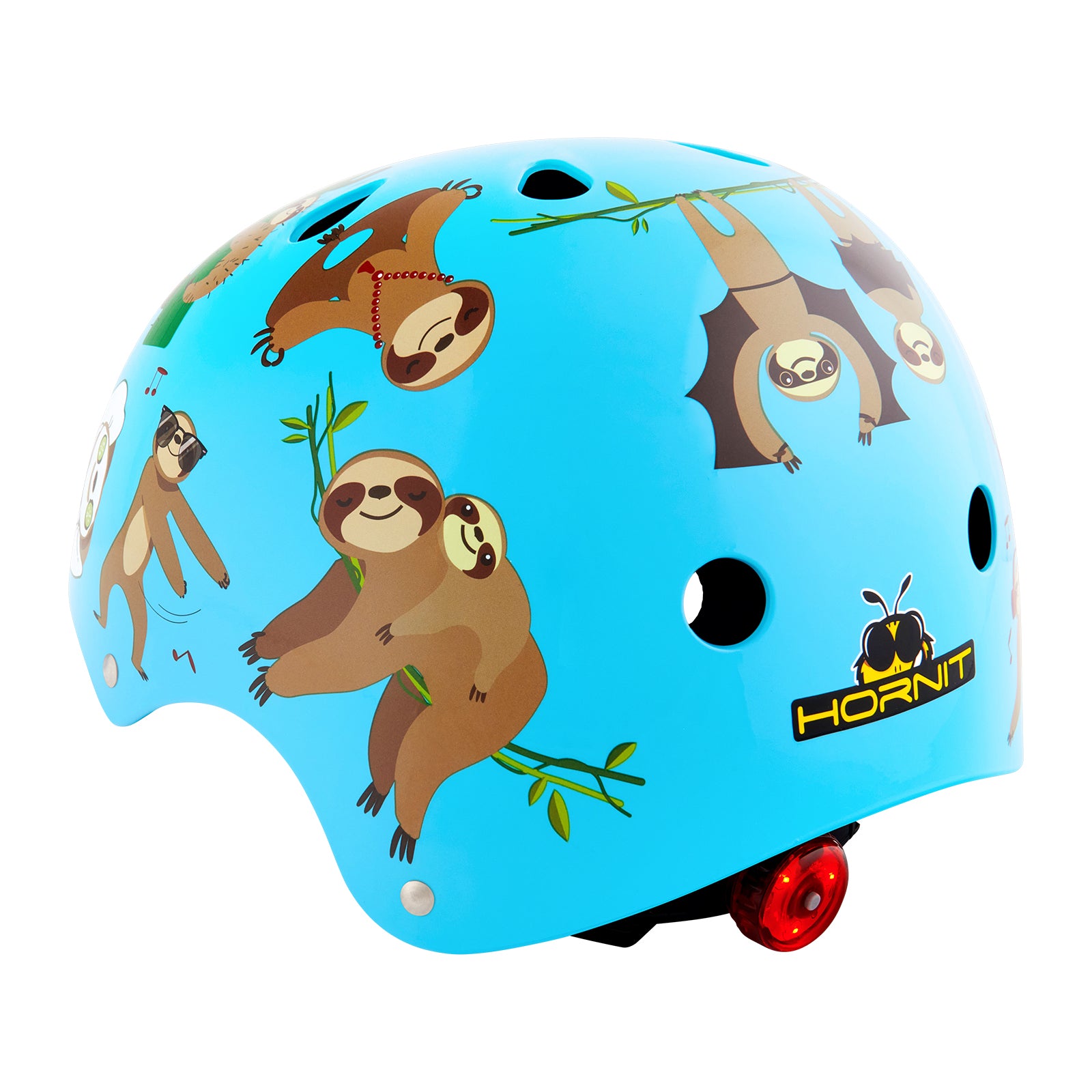 Made from durable, weather-proof plastic, our children's helmets protect your kids as they brave the rain, snow, and wind. Eleven air vents on each helmet ensure even air flow to keep them cool and comfortable. The rear safety light alerts distracted drivers or pedestrians to your child's presence. Combining style and safety, Hornit helmets come in a range of fun designs.