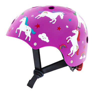 Some people say unicorns are a myth, but on a Hornit adventure anything is possible! With a touch of magic this helmet transports you to a purple galaxy where dreams come true! With rainbows, shooting stars and flying unicorns this helmet is truly out of this world.